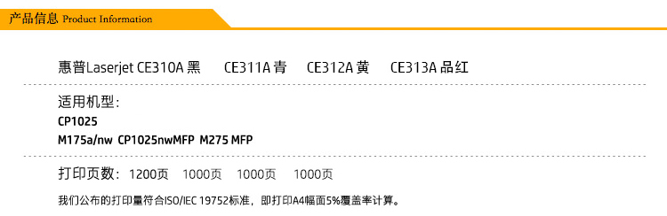 收藏 分享 惠普(HP) 126A(青色/黃色/品色)硒鼓CE311A/CE312A/CE313A