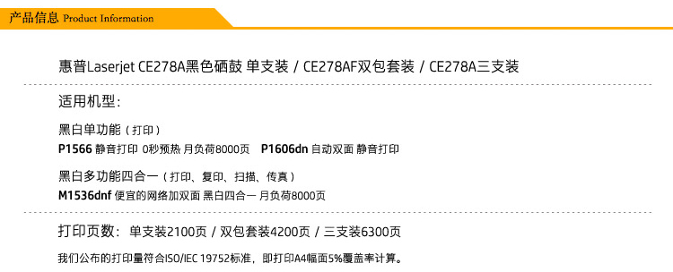 惠普(HP) 78A(黑色)硒鼓CE278A