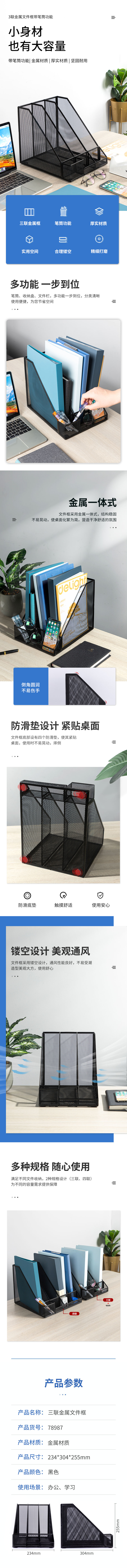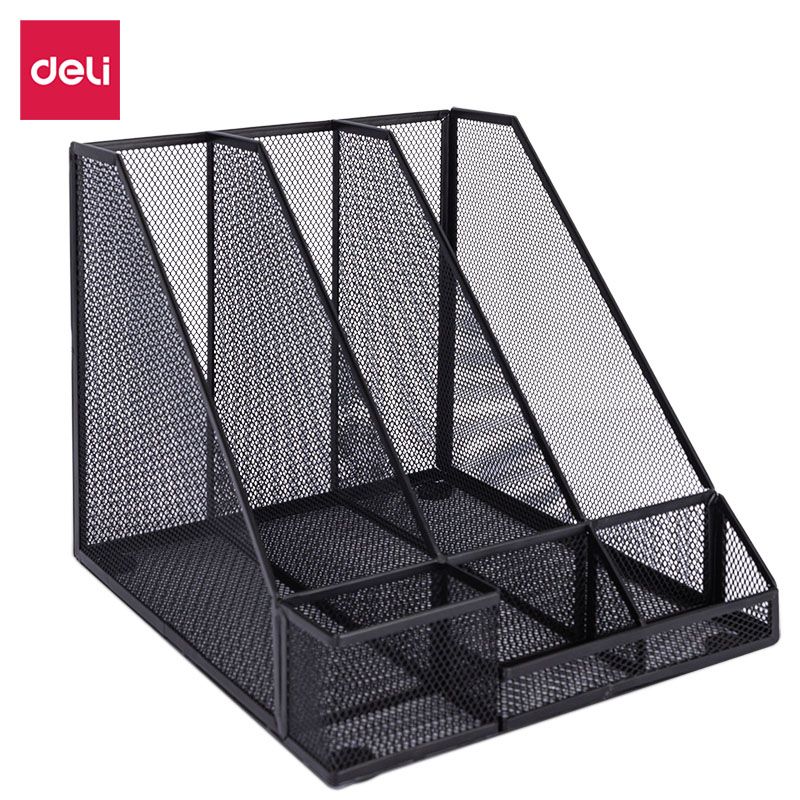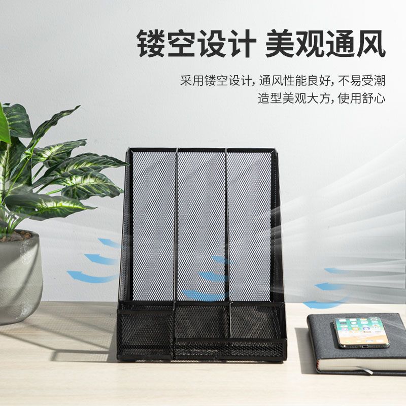 得力78987三聯金屬網狀文件框帶筆筒(黑)(個)文件欄/文件筐/資料框