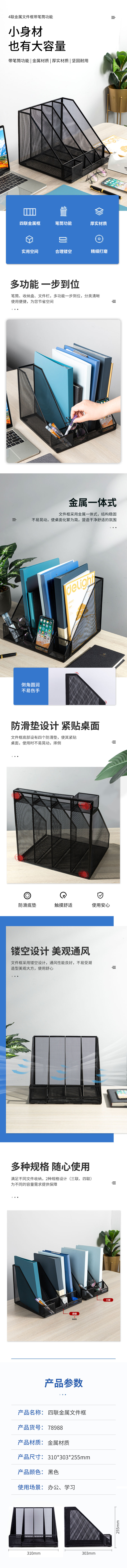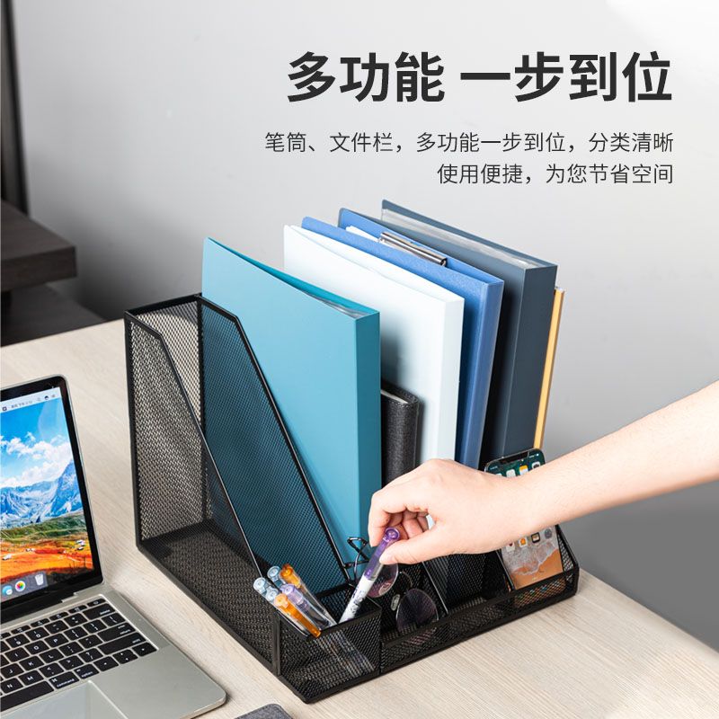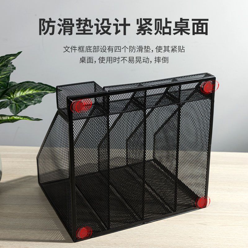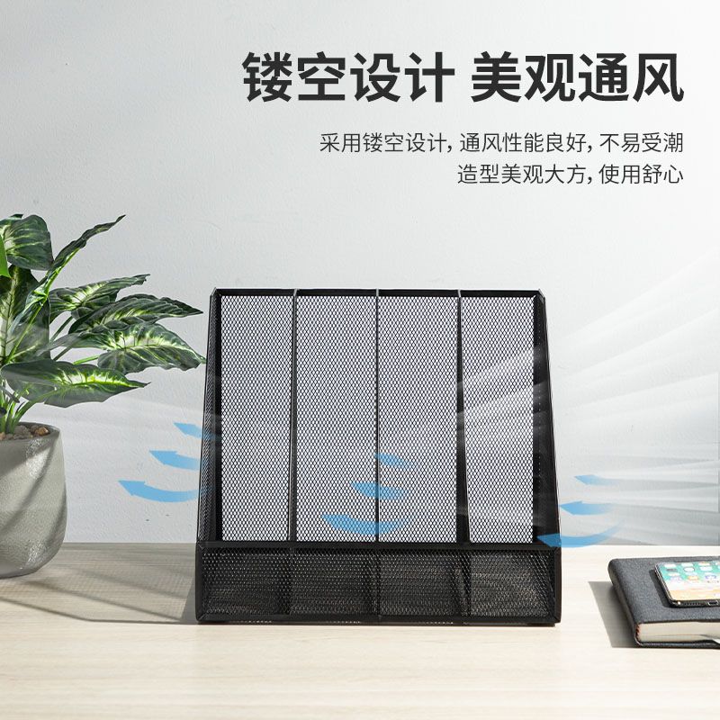得力78988四聯(lián)金屬網(wǎng)狀文件框帶筆筒(黑)(個)文件欄/文件筐/資料框