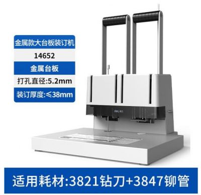 得力(deli) 金屬大臺板省力性財務憑證裝訂機 單據發票打孔機 手動打孔機會計辦公專用鉚管電動熱熔 14652【金屬大臺板】