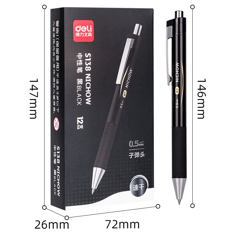 得力S138速干中性筆0.5mm子彈頭(黑)