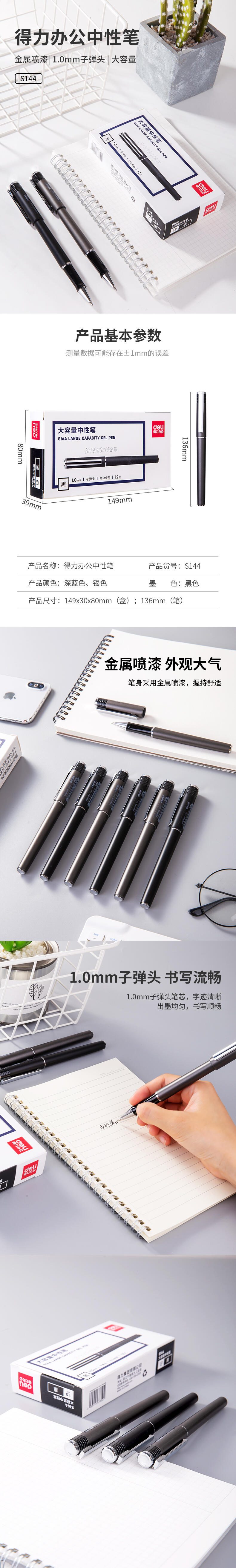 得力S144辦公大容量中性筆1.0mm子彈頭(黑)