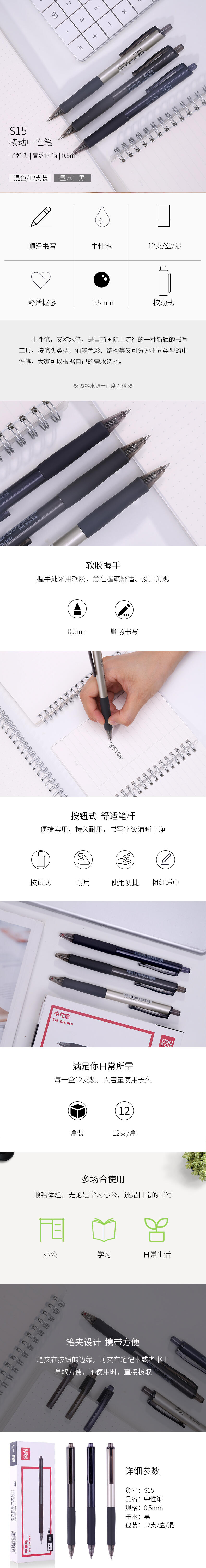 得力S15中性筆0.5mm子彈頭(黑)