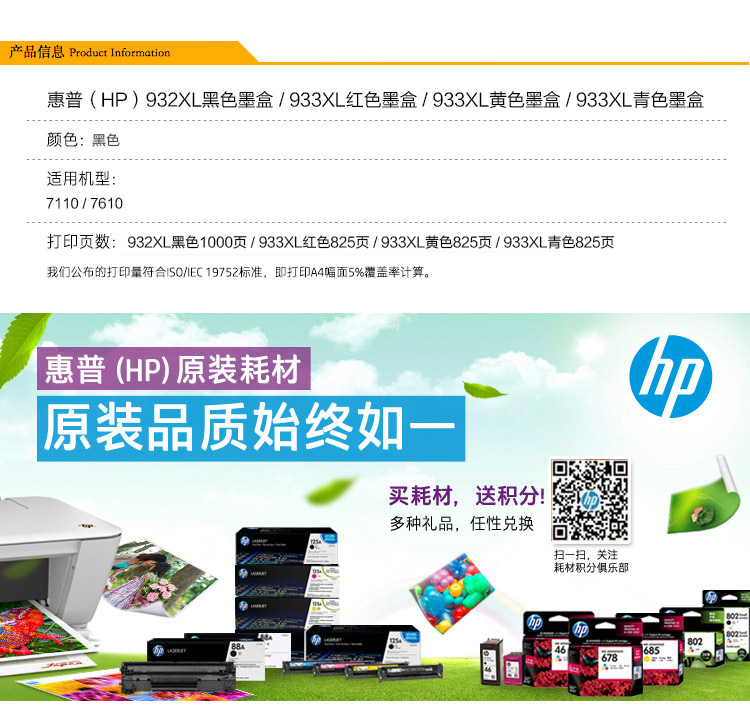 惠普(HP) 933XL(品色/青色/黃色)墨盒CN055AA