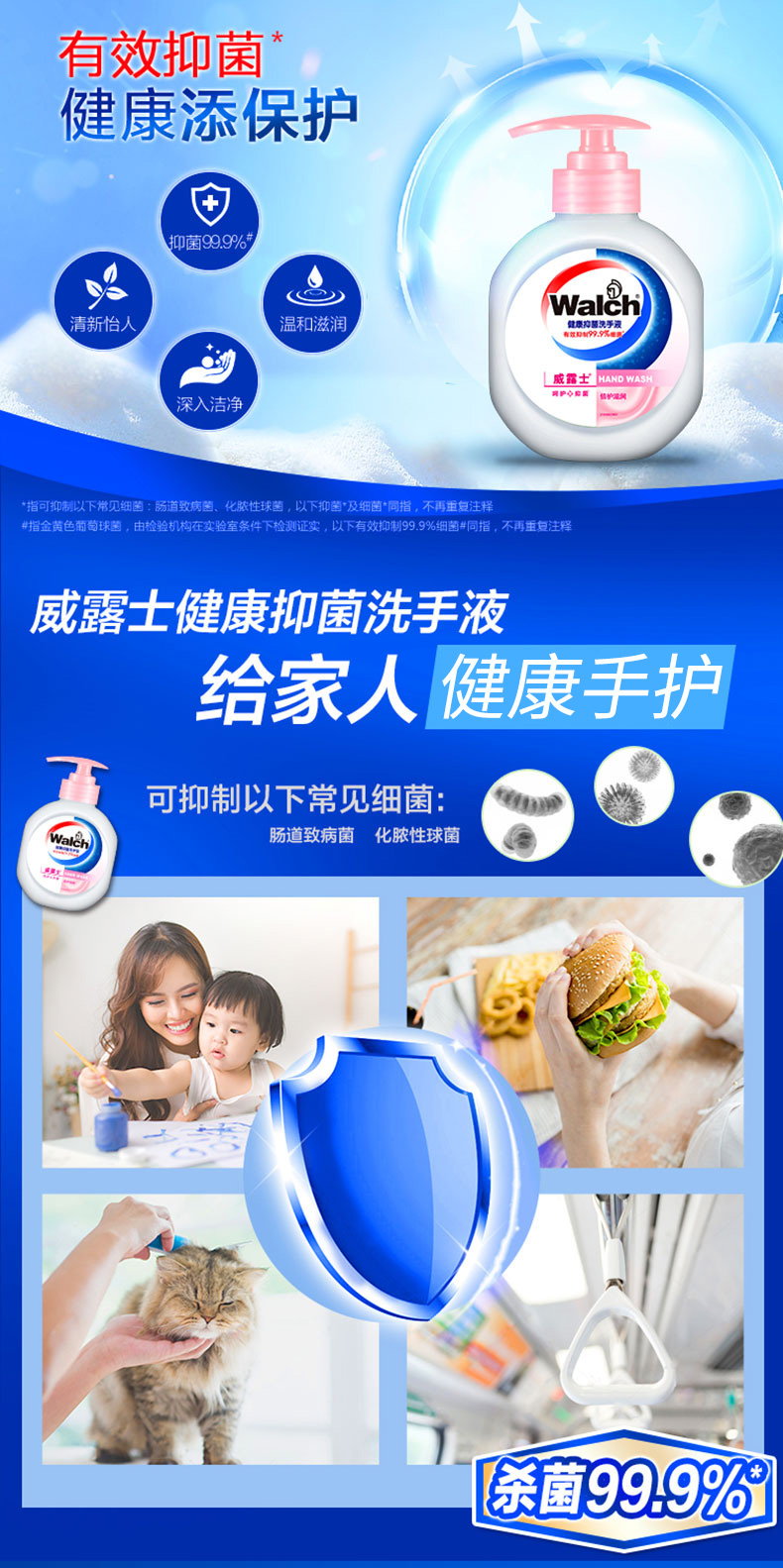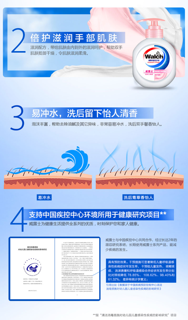 威露士(Walch) 健康洗手液(倍護滋潤)紅色瓶裝525ml 威露士洗手液