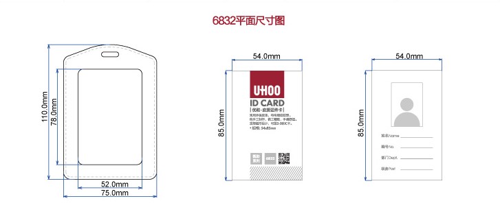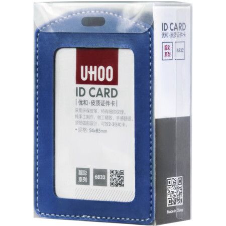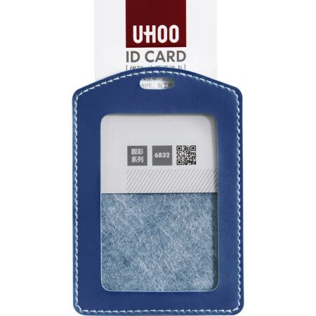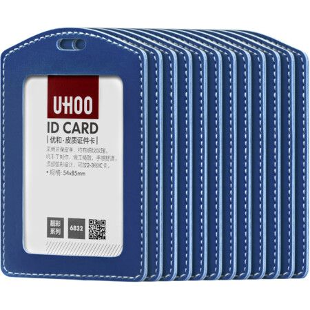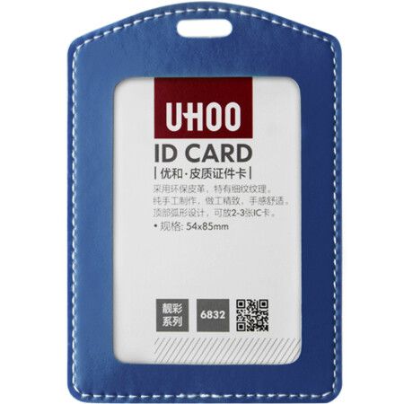 優和(UHOO) 6832 糖果色皮質證件卡套 豎式 藍色 12個/盒 工作證 員工牌 胸卡