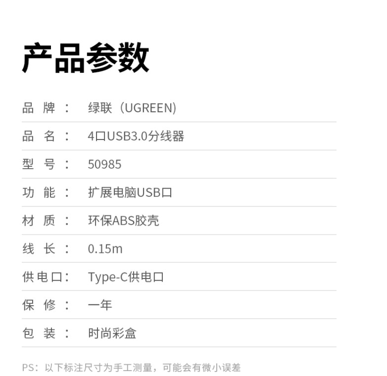綠聯USB3.0分線器 高速4口拓展塢 HUB集線器 USB擴展塢適用筆記本電腦一拖多接口轉換器轉接頭延長線 0.15米