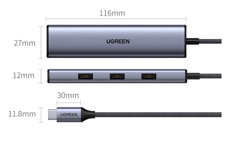 綠聯Type-C3.0分線器 USB-C拓展塢 4口集線器HUB擴展塢 適用蘋果華為筆記本電腦一拖四轉接頭延長線 0.2米