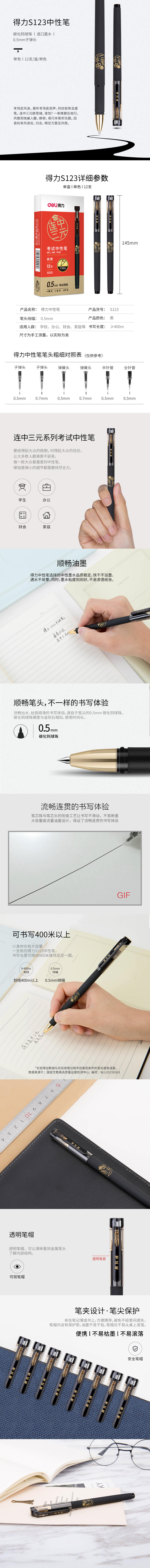 得力S123考試中性筆0.5mm子彈頭(黑) 水筆