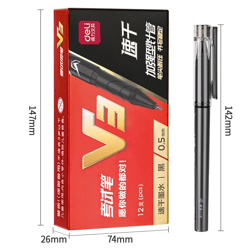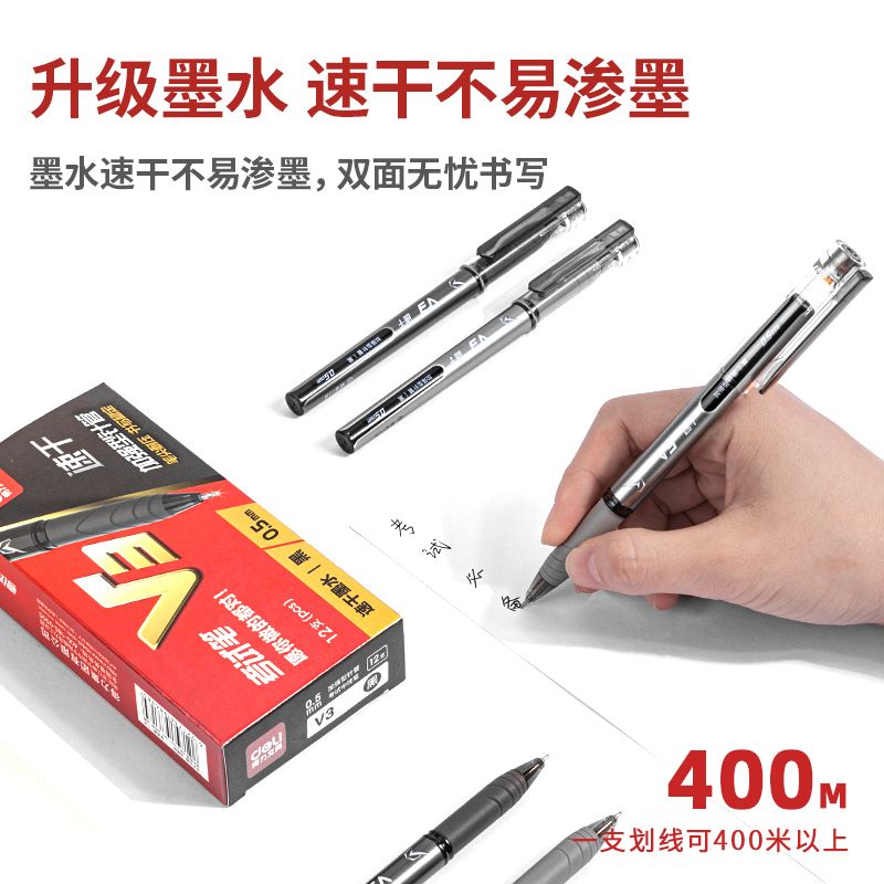 得力V3考試中性筆速干順滑0.5mm加強型針管(黑)(支) 水筆