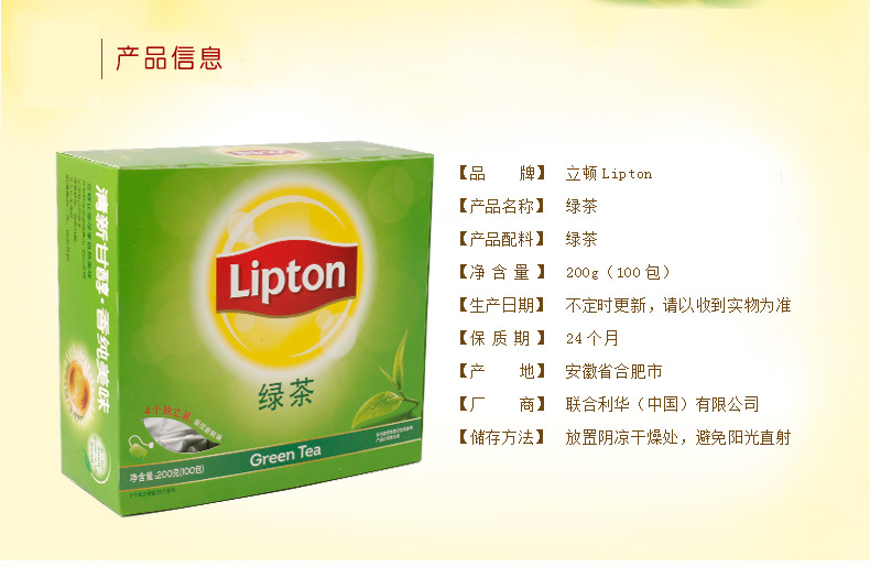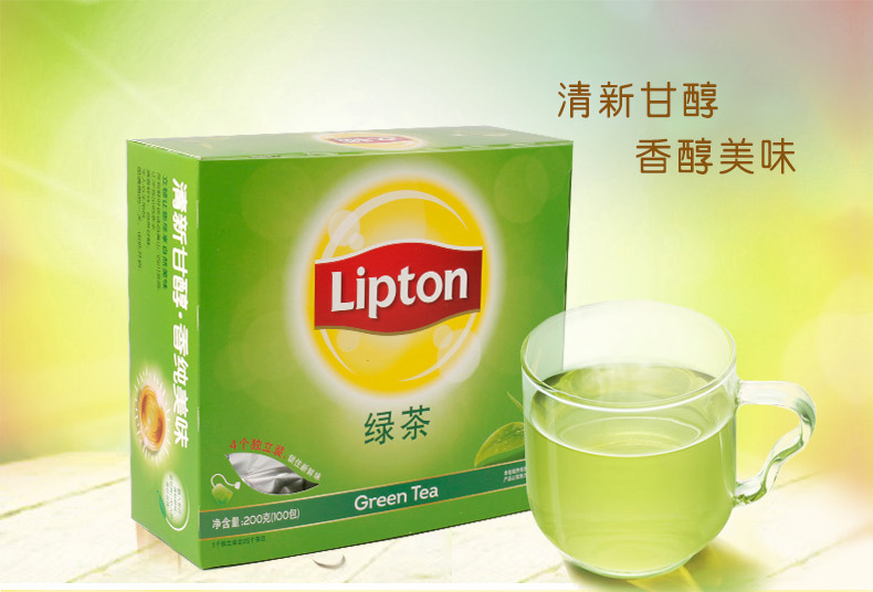 立頓(Lipton) 綠茶茶包200g(2g*100袋) 綠茶 辦公室下午茶包 非獨(dú)立袋泡 茶葉 2g*100