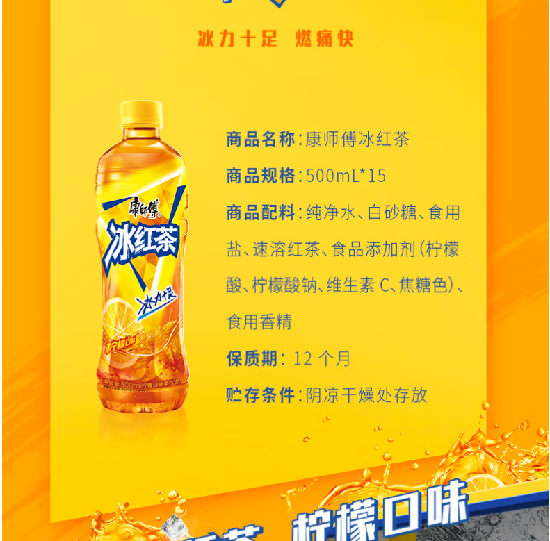康師傅 冰紅茶500ml*15瓶 檸檬紅茶飲料飲品量販裝整箱
