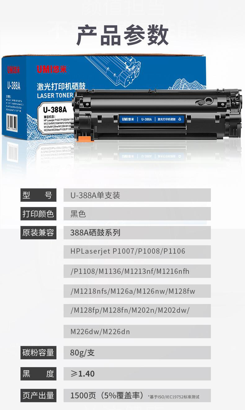 悠米388A 大容量熱銷爆款單支裝硒鼓適用HP388A hp1007 1106 1008 1108 m1136 1213 1216 388悠米硒鼓dyhc rm