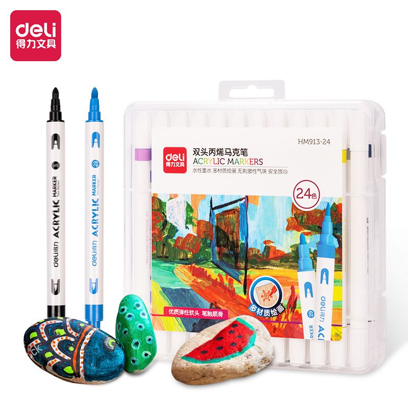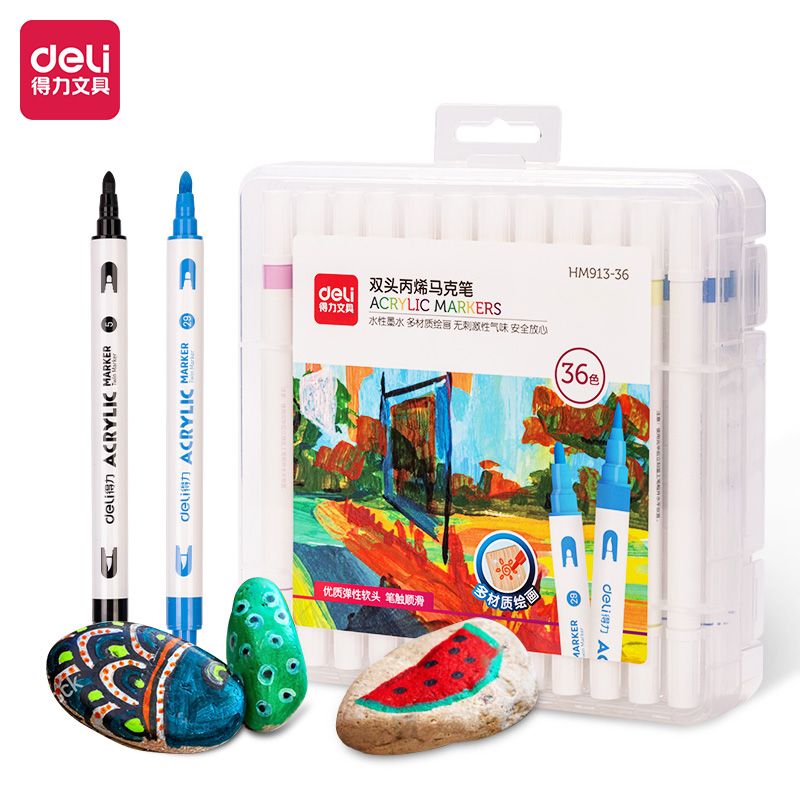得力雙頭丙烯馬克筆HM913-12 水彩筆 畫筆 圖畫筆 SC