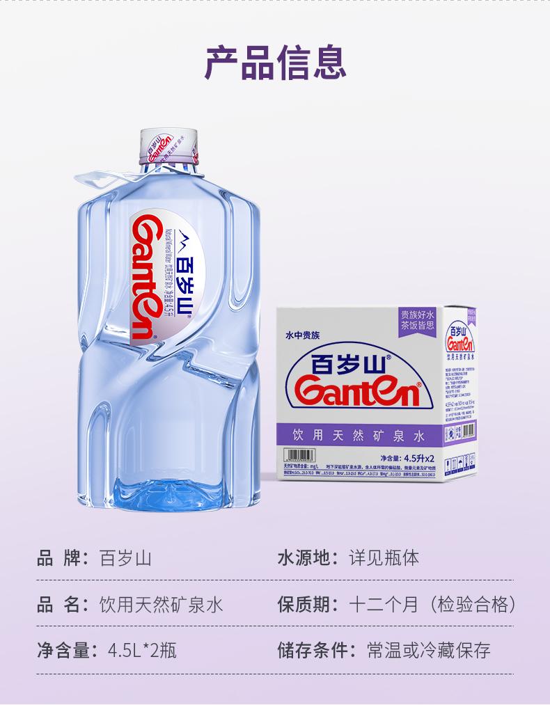 百歲山(ganten) 礦泉水4.5L*2瓶 飲用水 yys