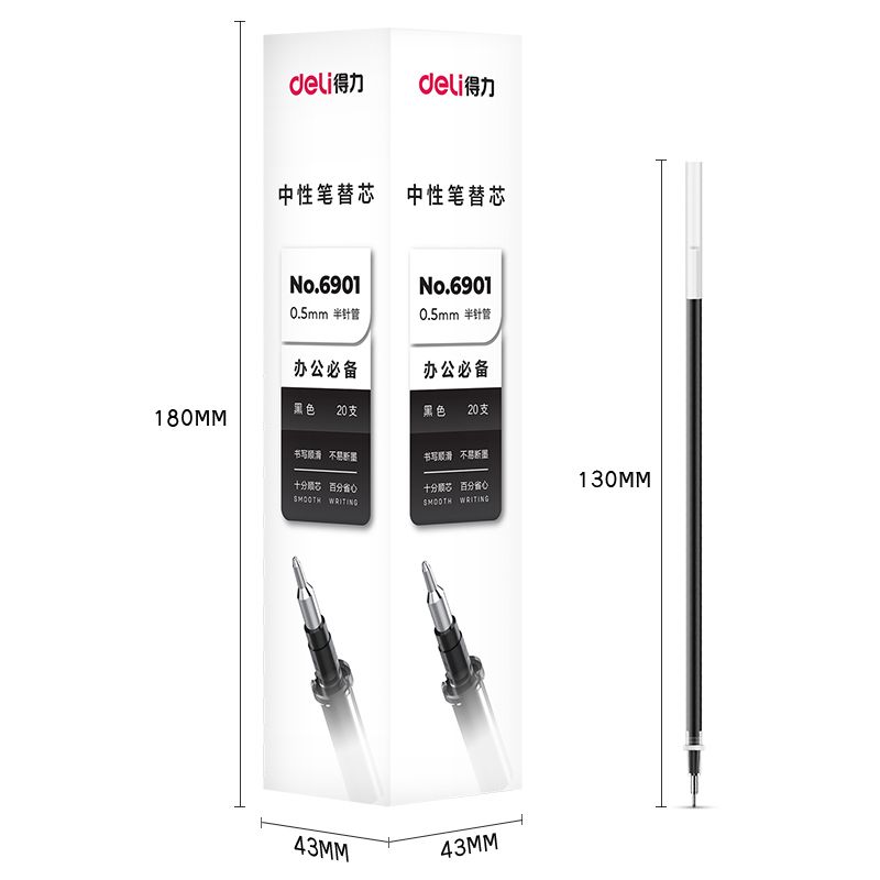 得力 deli 6901中性筆芯0.5mm半針管 水筆芯 中性筆芯 開學