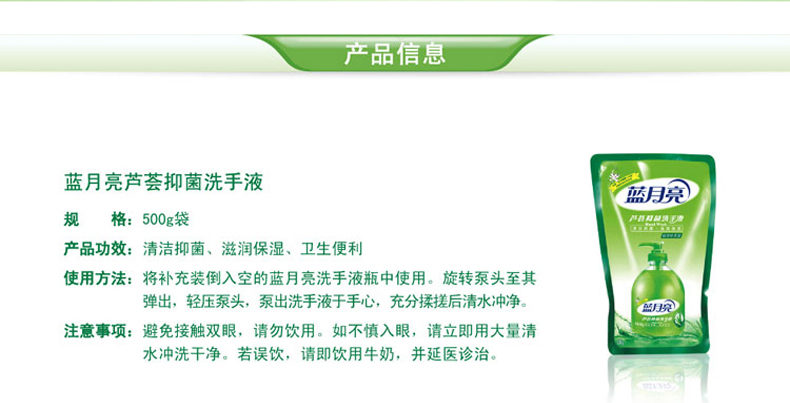 藍月亮 清潔抑菌 滋潤保濕洗手液(蘆薈)袋裝 補充裝500g 藍月亮洗手液