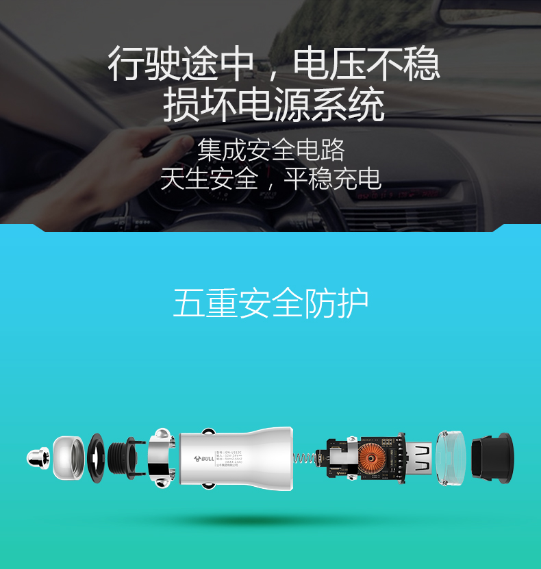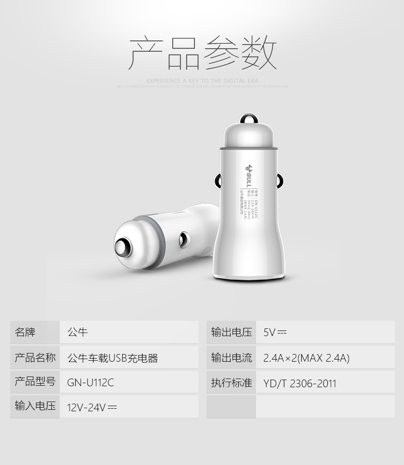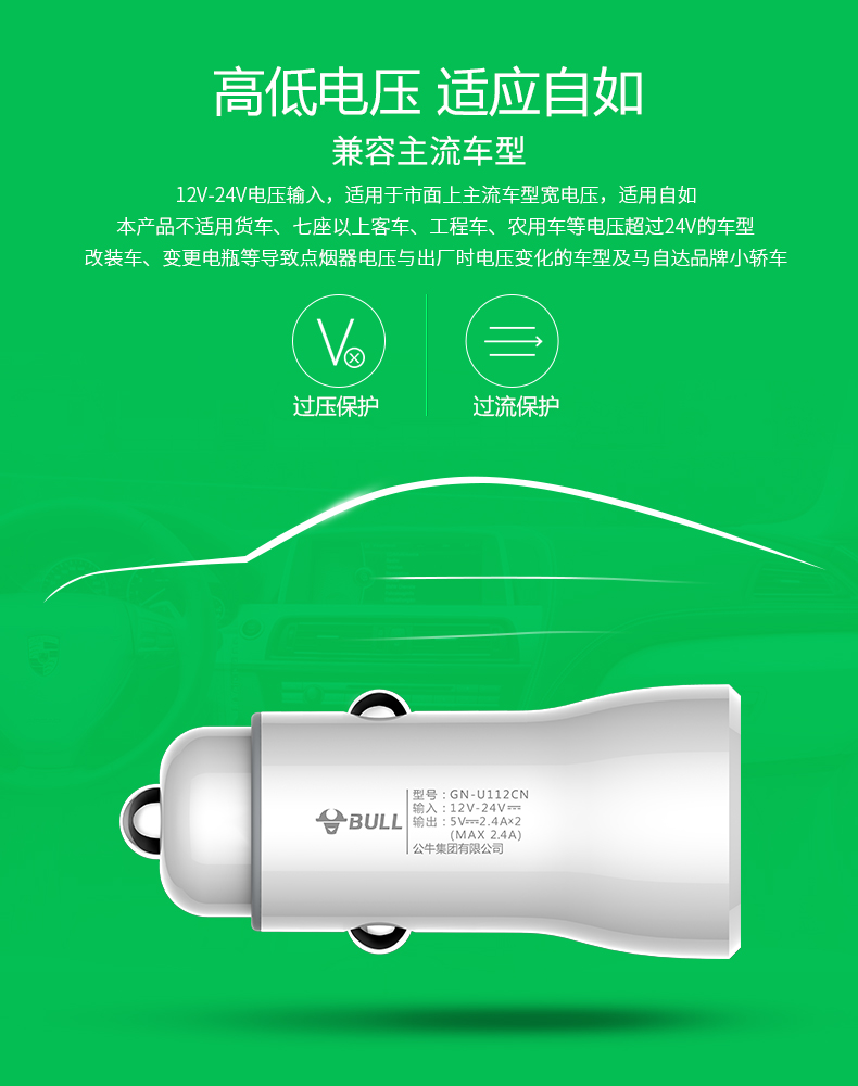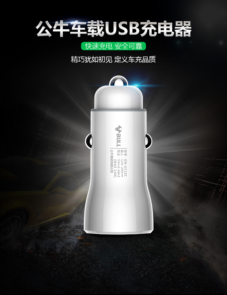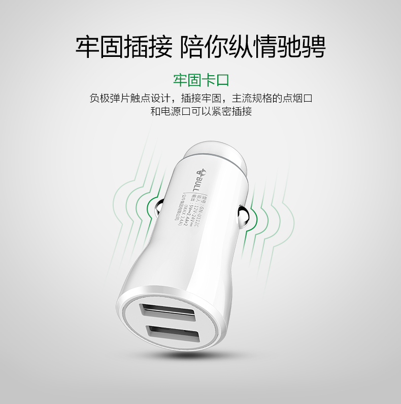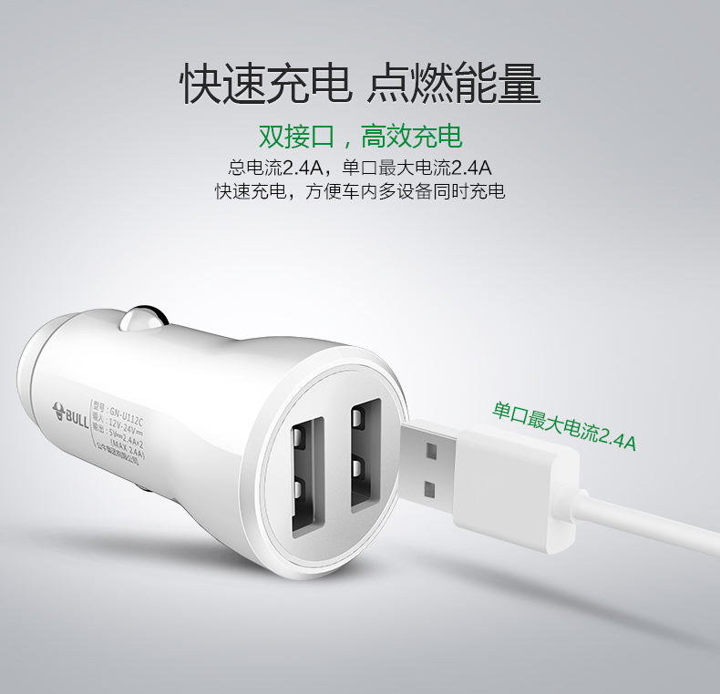 公牛車載充電器5V 雙USB手機(jī)平板通用車充多功能汽車一拖二 GN-U112CN公牛車載USB充電器