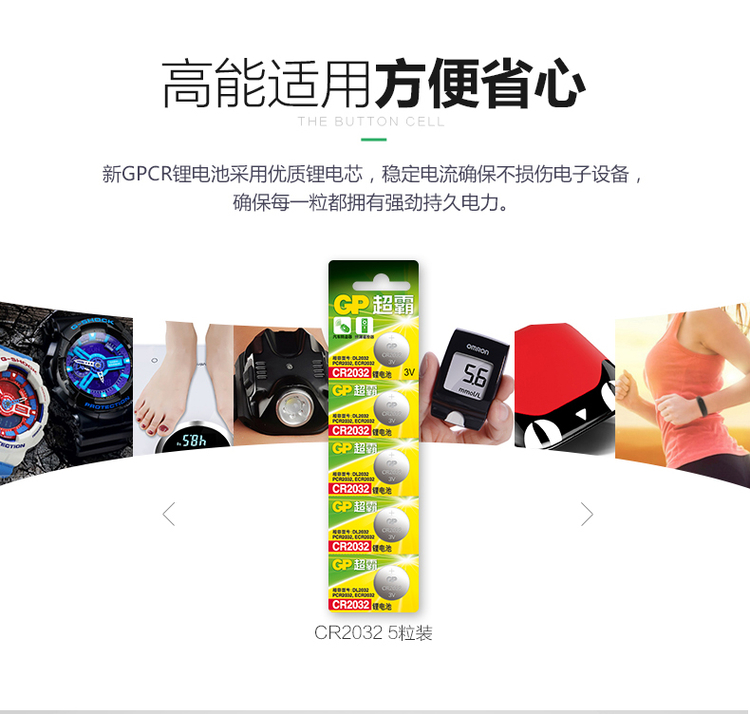 超霸(GP)CR2032 CR2025 CR2016 鋰電池5粒裝紐扣3V電池電子手表電子秤汽車鑰匙電腦主板