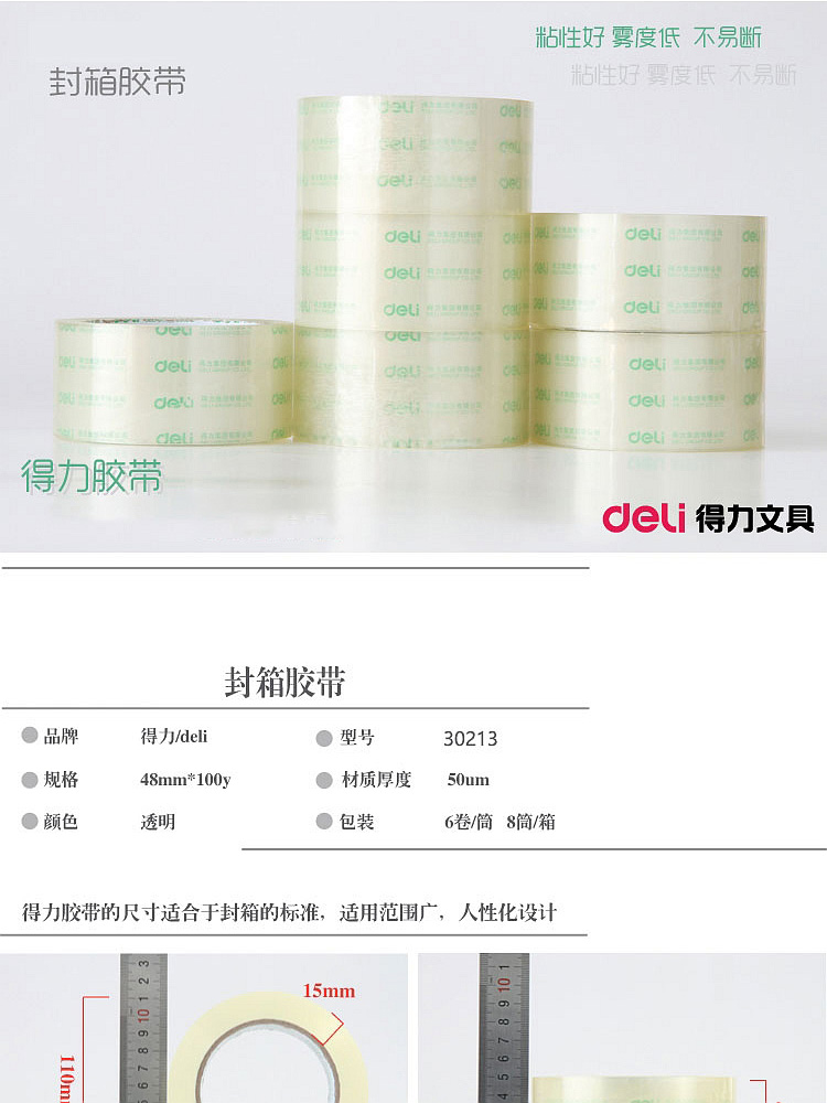 得力30212 30213 30214 封箱膠帶 48mm*60Y 48mm*100Y 48mm*150Y 透明膠帶封箱膠帶打包膠帶4.8 得力透明膠帶