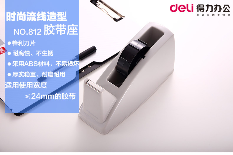 得力(deli)大號膠帶座切割器封箱器(膠帶寬度 ≤24mm) 藍灰隨機812 得力膠帶座