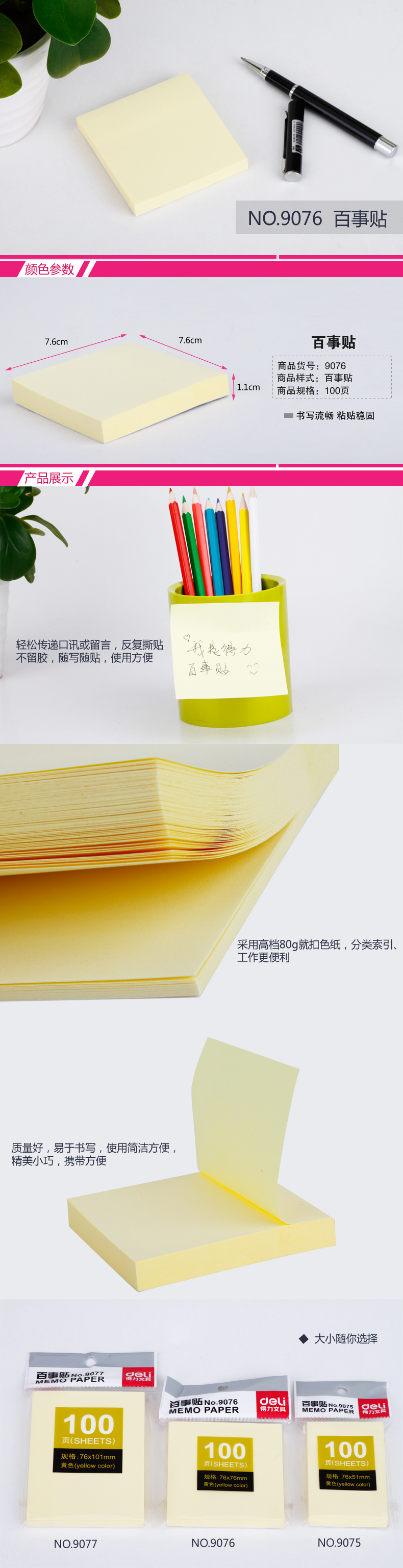 得力 (deli)百事貼便利貼N次貼 告示貼 辦公用品 76*51mm單本