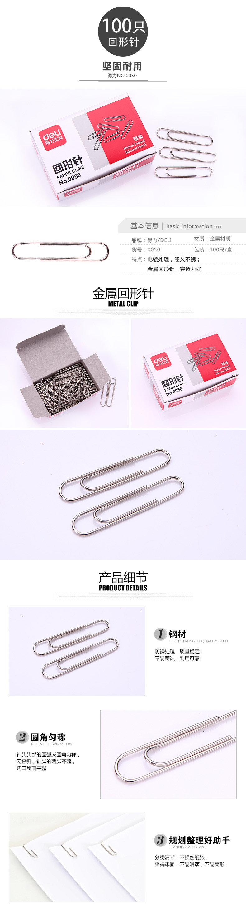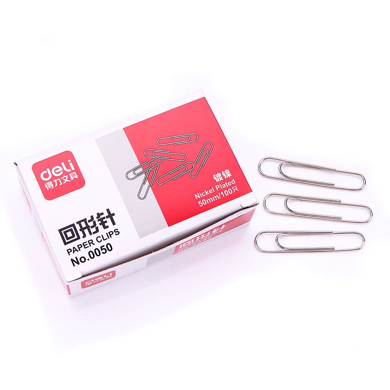 得力大號回形針0050加厚50mm 5cm鍍鎳辦公回型針曲別針100枚/盒