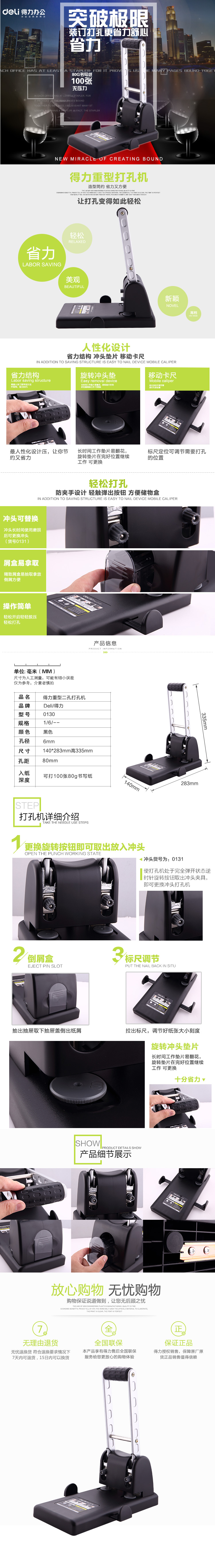 得力0130重型兩孔打孔器 加厚層雙孔打孔機(jī) 二孔打洞機(jī)文具 得力重型打孔機(jī)