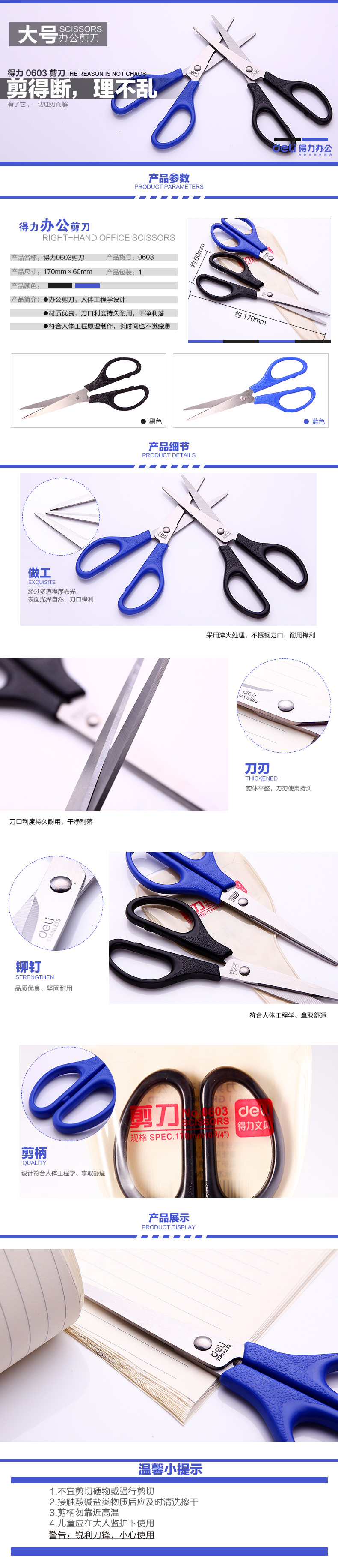 得力剪刀0603 辦公文具 鋒利不銹鋼美工剪紙刀 家用縫紉裁剪剪刀