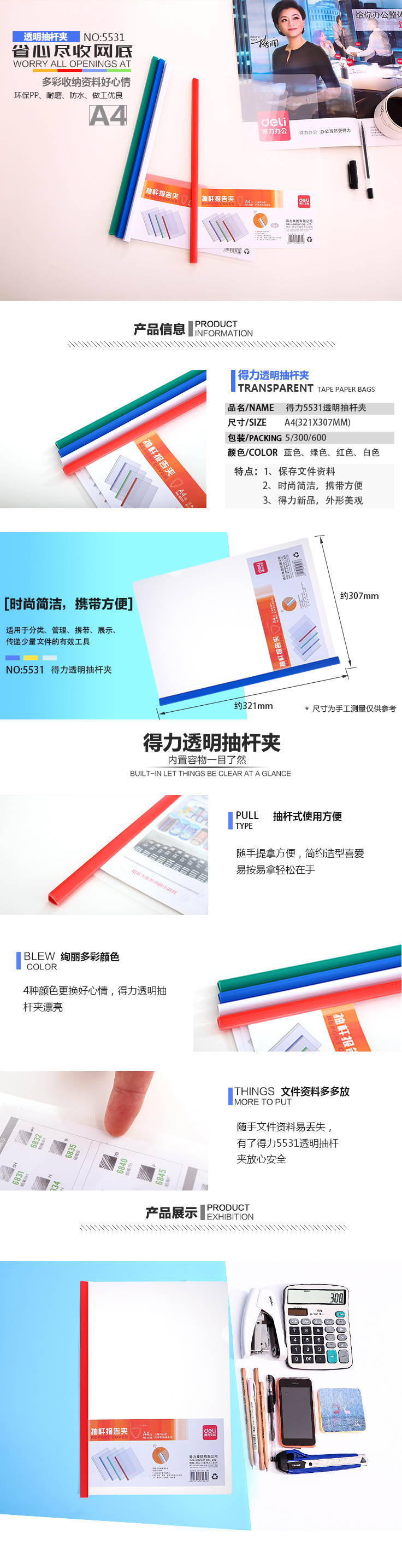 得力5531 抽桿夾 可夾30張 A4拉桿夾 資料滑桿報告夾辦公用品文具包郵 得力抽桿夾