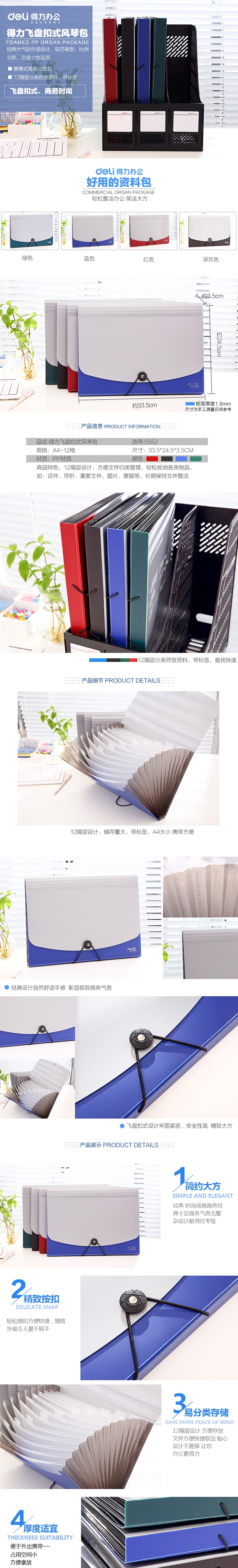 得力(deli)5558 A4/12格飛盤扣式雙色風琴包/資料包/文件包包郵