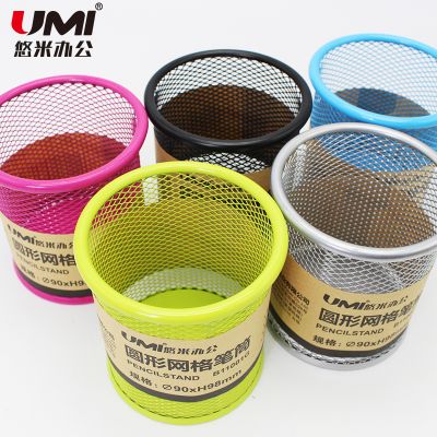 筆筒 黑色圓型網(wǎng)格金屬筆筒韓國創(chuàng)意時尚桌面辦公用品收納盒 彩色金屬網(wǎng)格筆筒