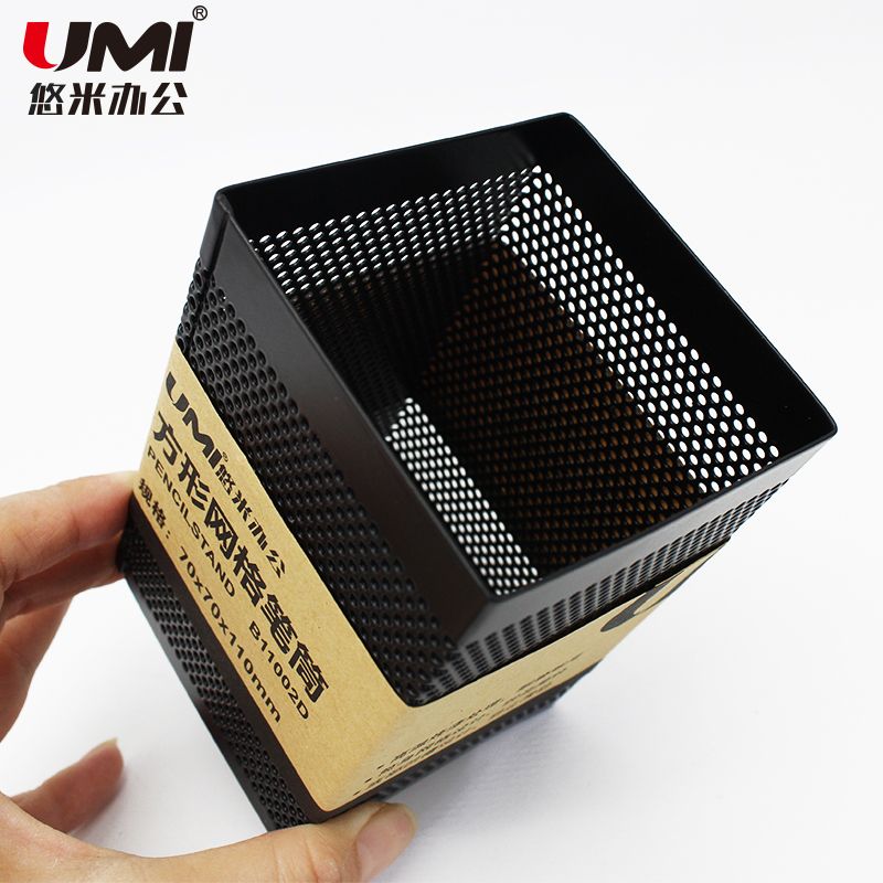 悠米 方形金屬網(wǎng)格筆筒 B11002D 黑 鐵網(wǎng)筆筒 筆筒