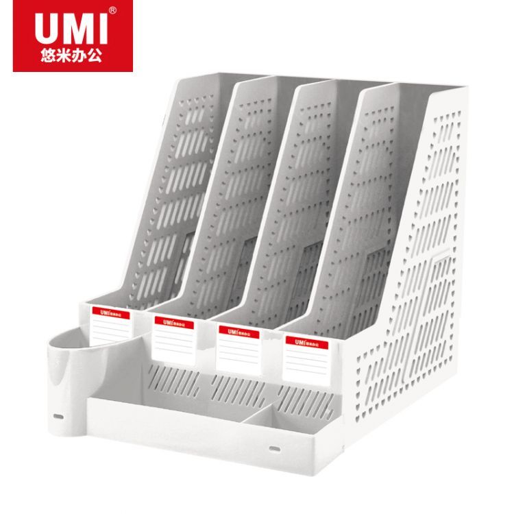 三欄文件欄 四欄文件框文件架桌面收納資料架辦公用品置物架文件籃帶筆筒 四欄文件欄 文件座