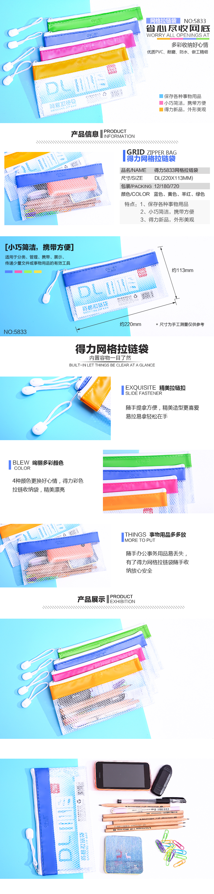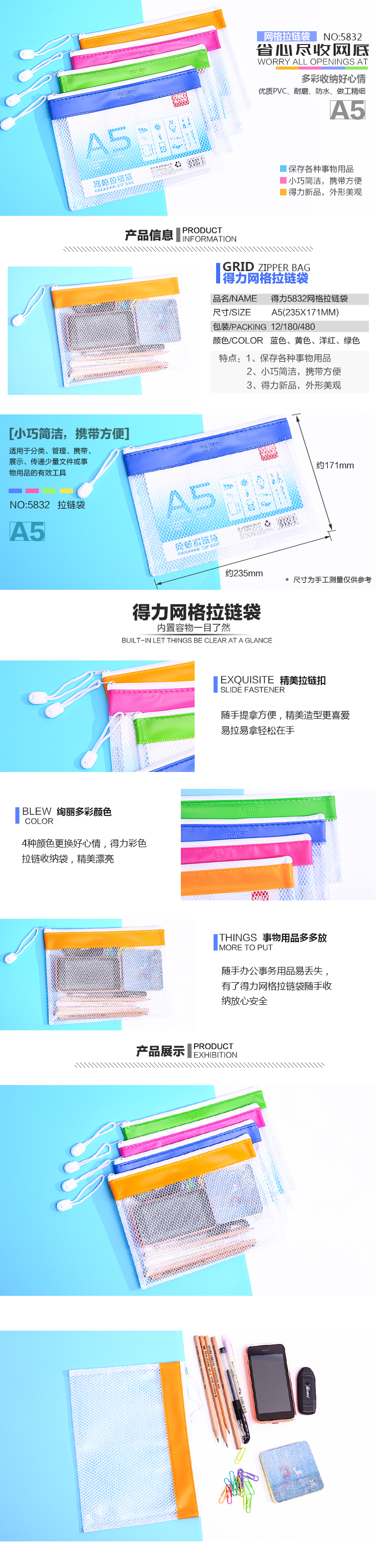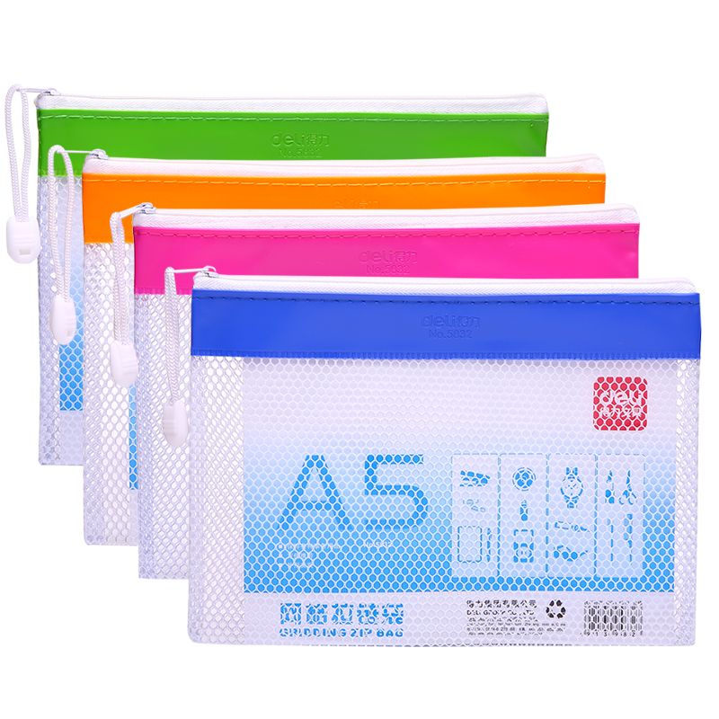 得力辦公用品網格拉鏈袋A5.5/A5/B5/A4學生文具文件袋文具袋子收納袋/文件袋/網格袋/票據袋 5830 5831 5382 5383