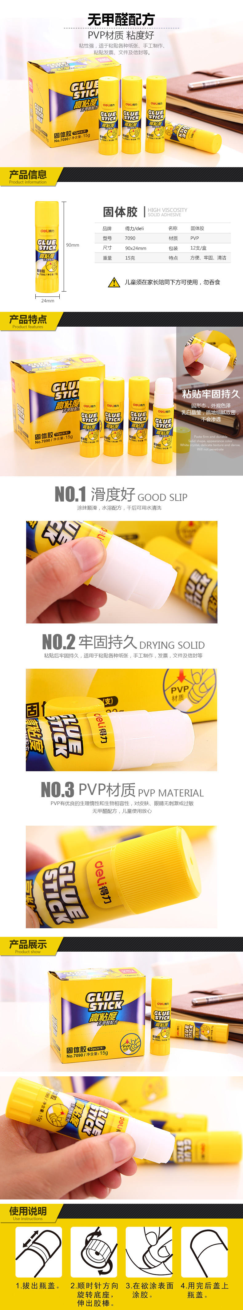 得力強力固體膠高粘度學生用兒童手工透明膠棒文具無毒膠水 7090/7092/7093 得力固體膠