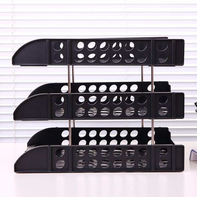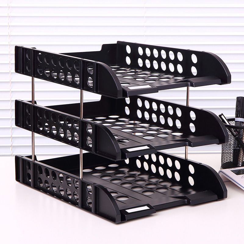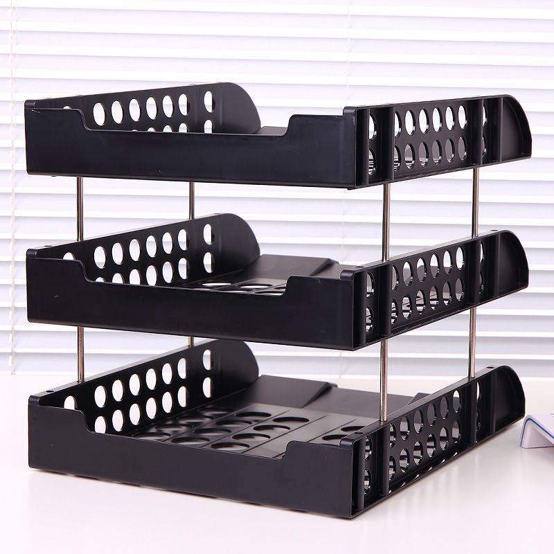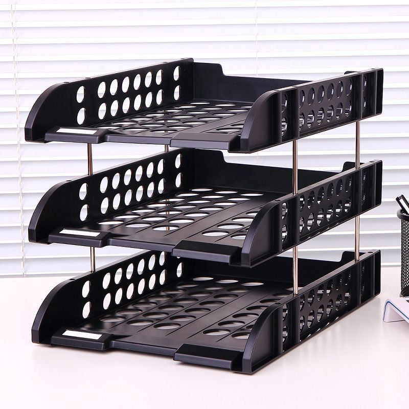 得力(deli)9217 加厚PS材質三層文件盤 文件座 灰色 黑色 1只裝