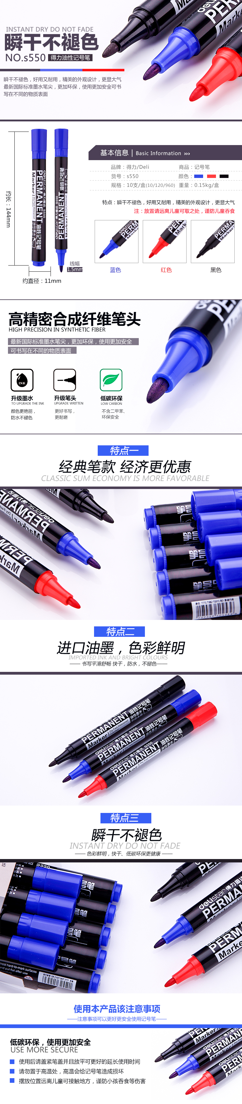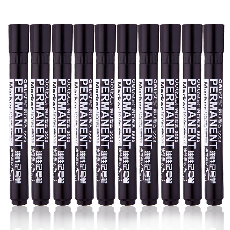 得力(deli) 記號筆S550 單頭油性筆 箱頭筆 物流筆大頭筆 10支裝 6881黑色
