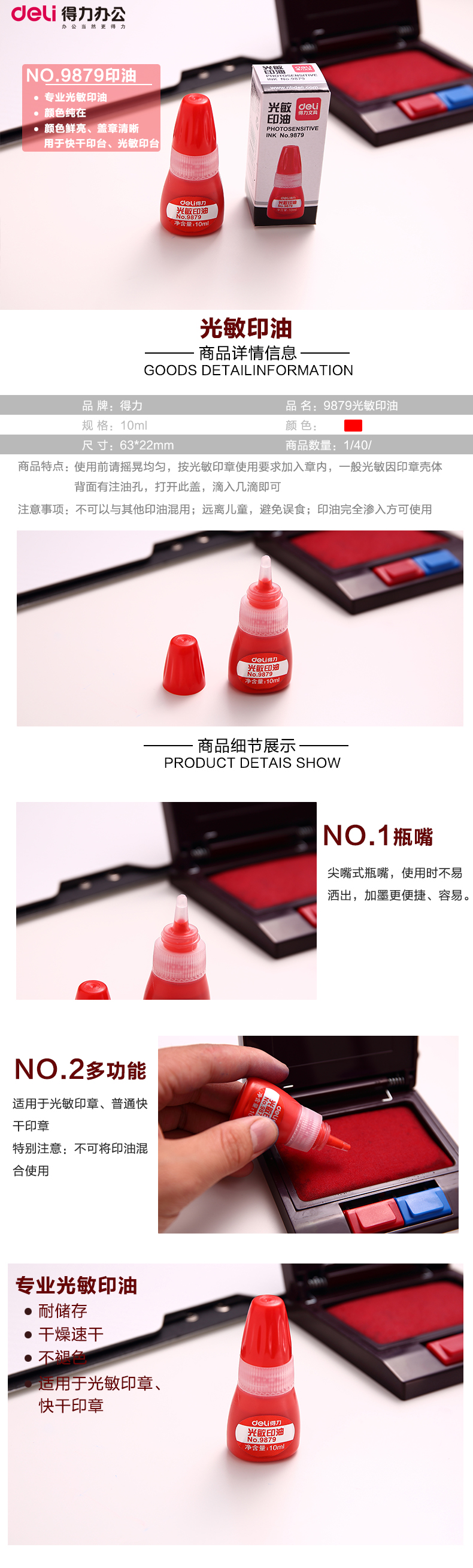 得力(deli)10ml財務(wù)印章光敏印油 紅色光敏印章油 9879