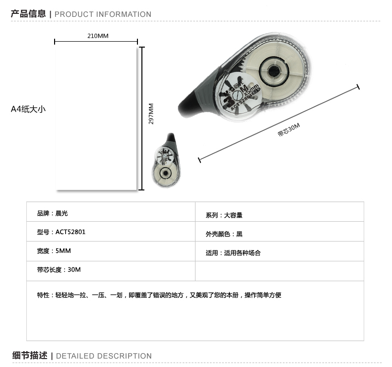 晨光(M&G)ACT-52801簡約30m修正帶改正帶涂改帶 開學