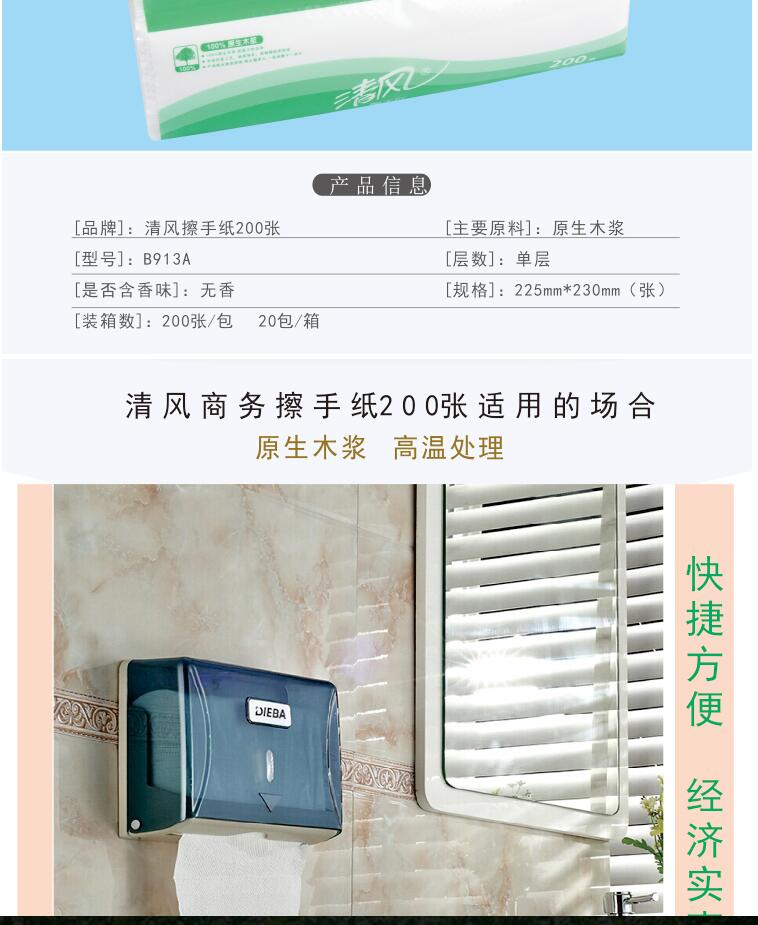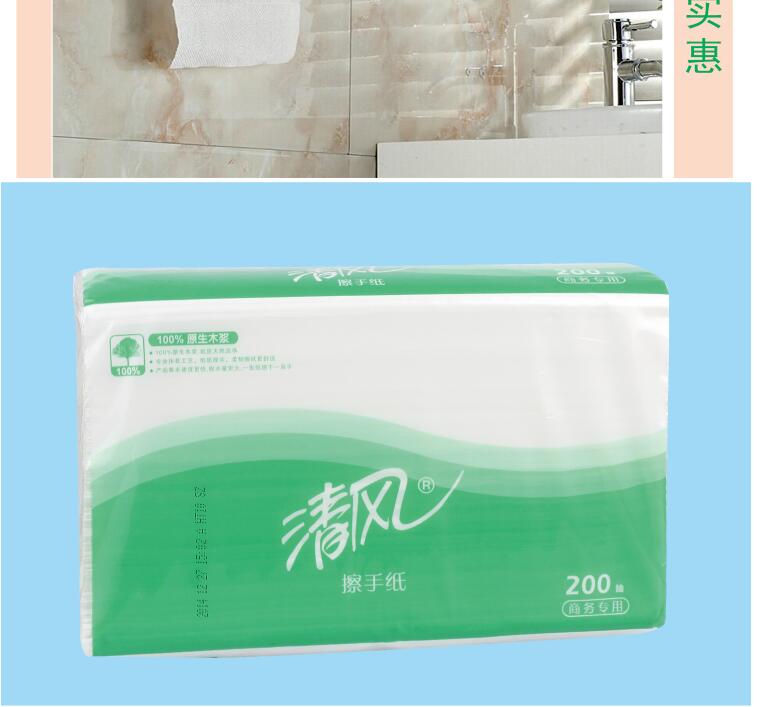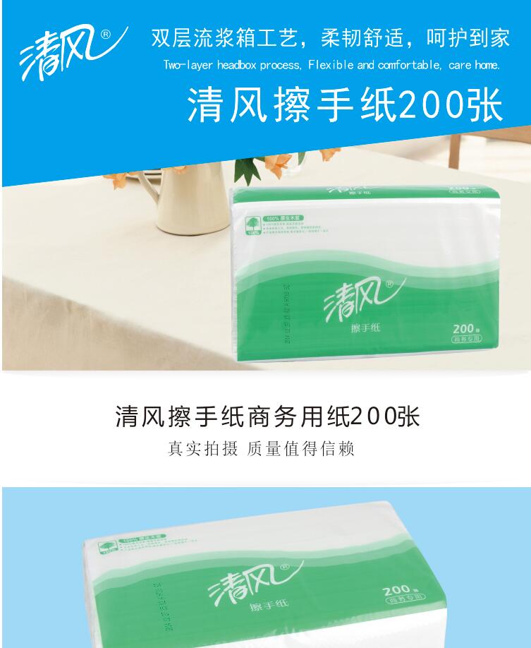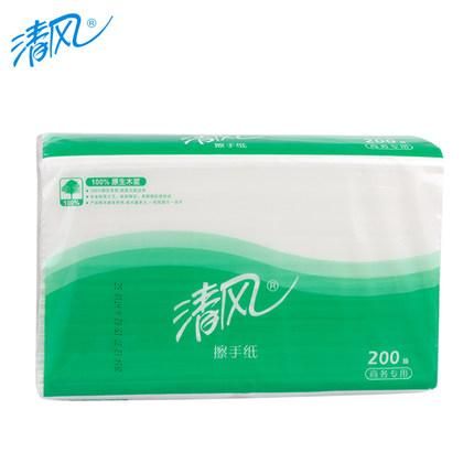 清風(fēng)200抽三折擦手紙木漿抽紙整箱裝(20包/箱)B913A 酒店餐廳商務(wù)用紙