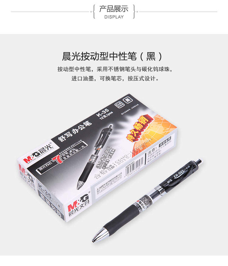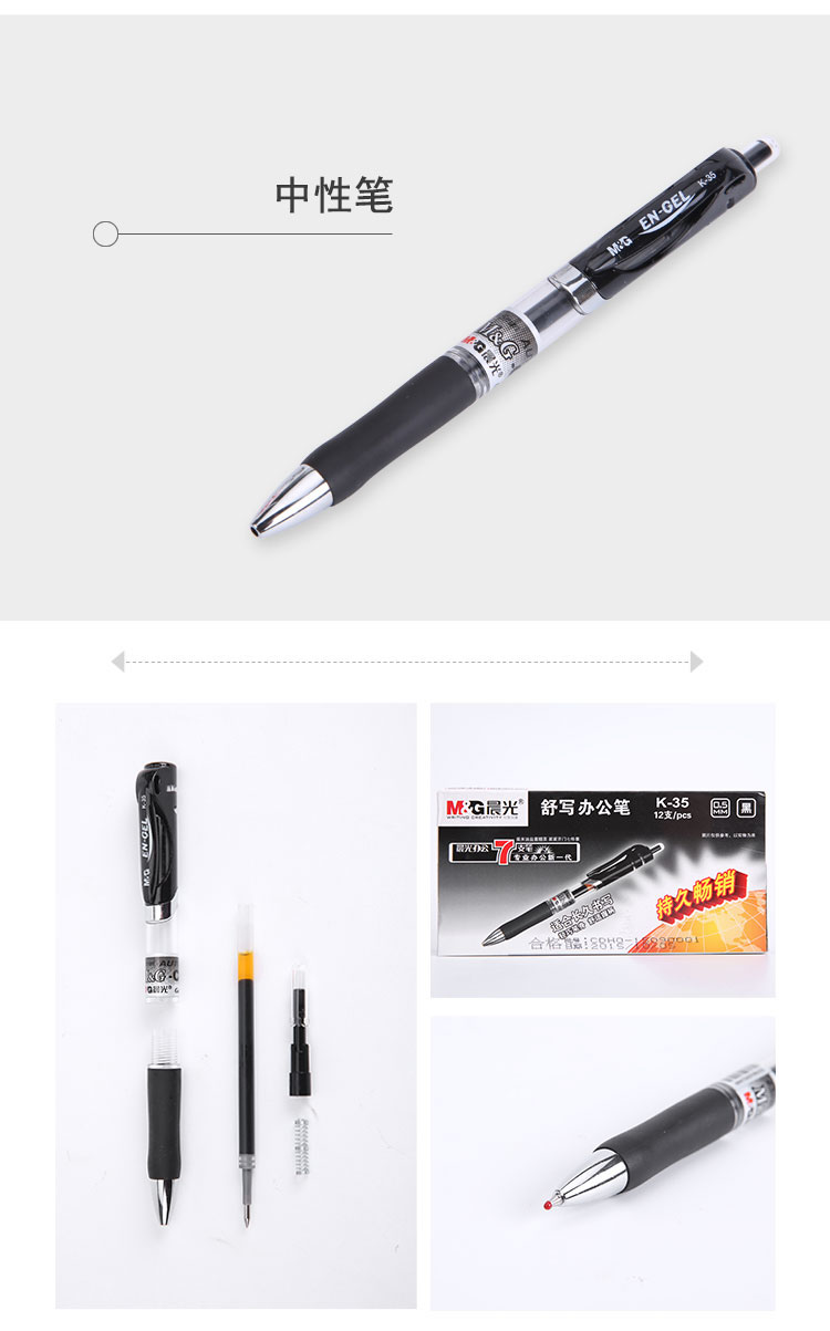 晨光(M&G)K35經典辦公按動子彈頭中性筆簽字筆水筆0.5mm 黑色水筆 K-35 按動水筆 開學