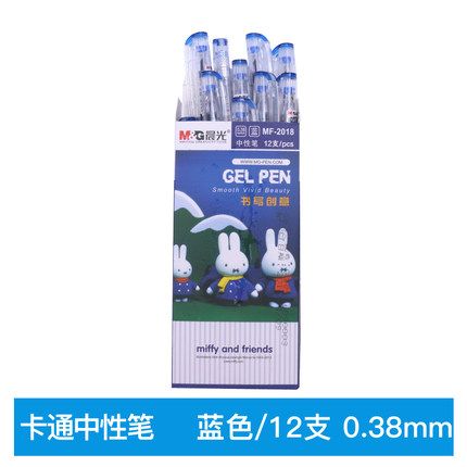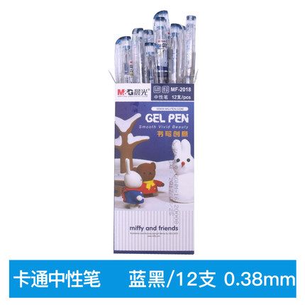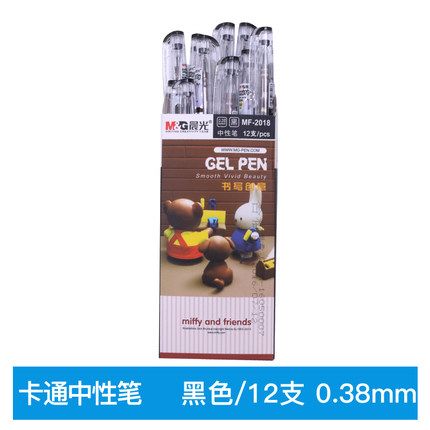晨光水筆0.38MM 卡通米菲中性筆MF-2018好用水筆 12支裝 黑色水筆 開學