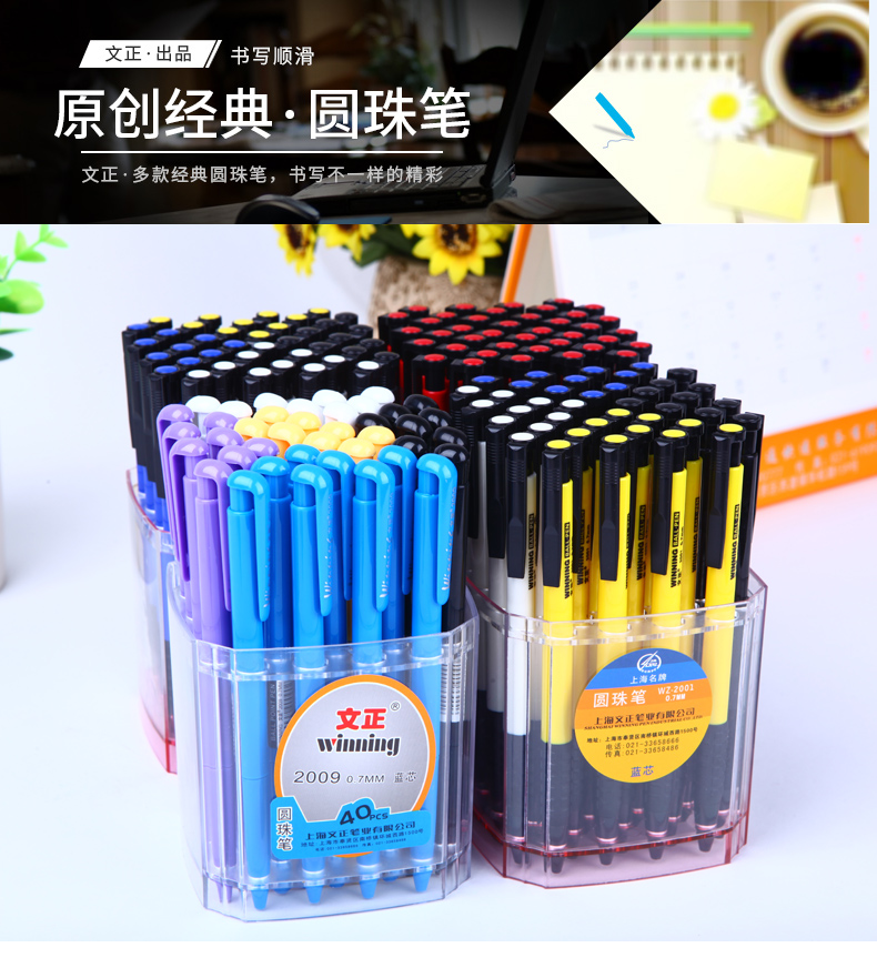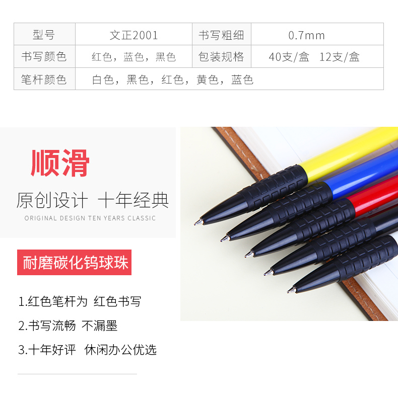 按動(dòng)圓珠筆WZ-2001文正2001圓珠筆0.7mm辦公文具學(xué)生文具 2001藍(lán)色 藍(lán)色圓珠筆 黑色圓珠筆