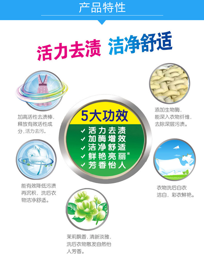 雕牌洗衣粉1.638kg 1.28kg 252g包加酶無磷茉莉清香輕松去污衣物清潔